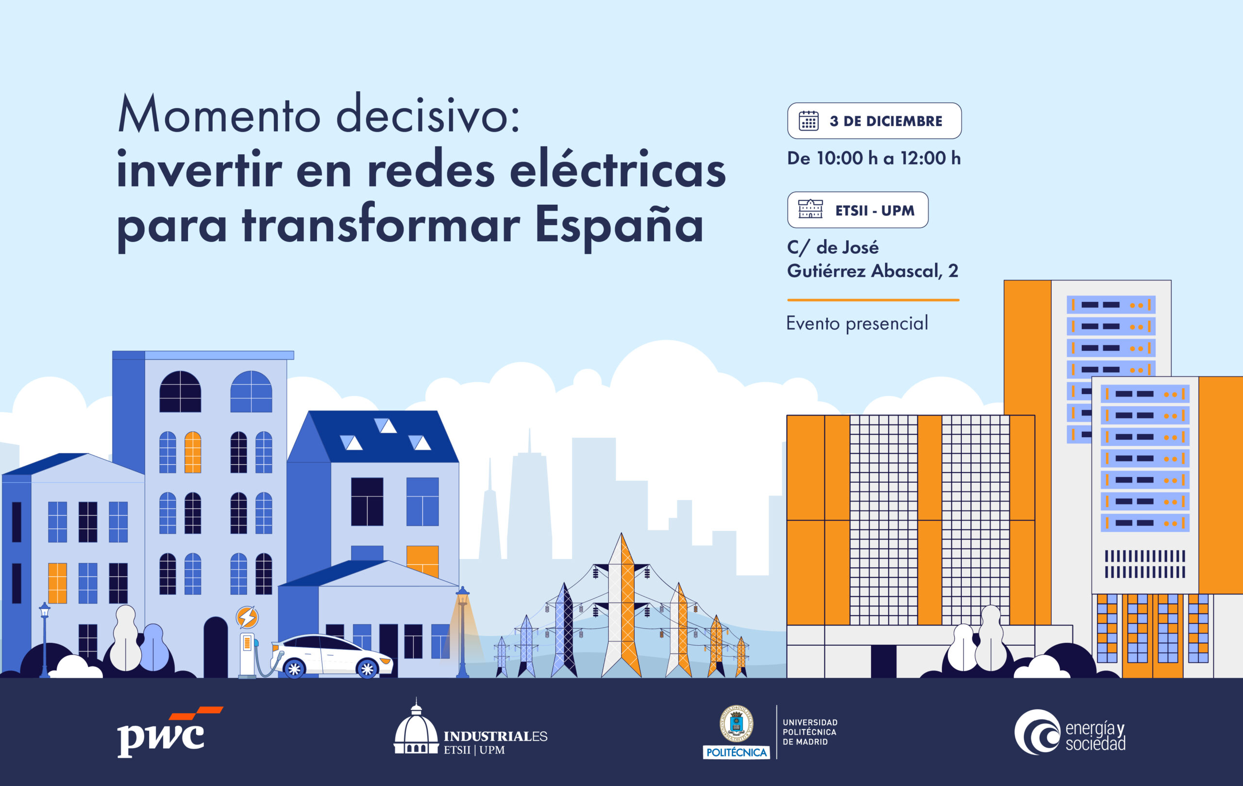 Energía y Sociedad, junto con la Escuela Técnica Superior de Ingenieros Industriales de la Universidad Politécnica de Madrid (ETSII – UPM), tiene el placer de invitarle a la jornada “Momento decisivo: invertir en redes eléctricas para transformar España”, que tendrá lugar el próximo 3 de diciembre a las 10.00 a.m. en la Universidad Politécnica de Madrid.
